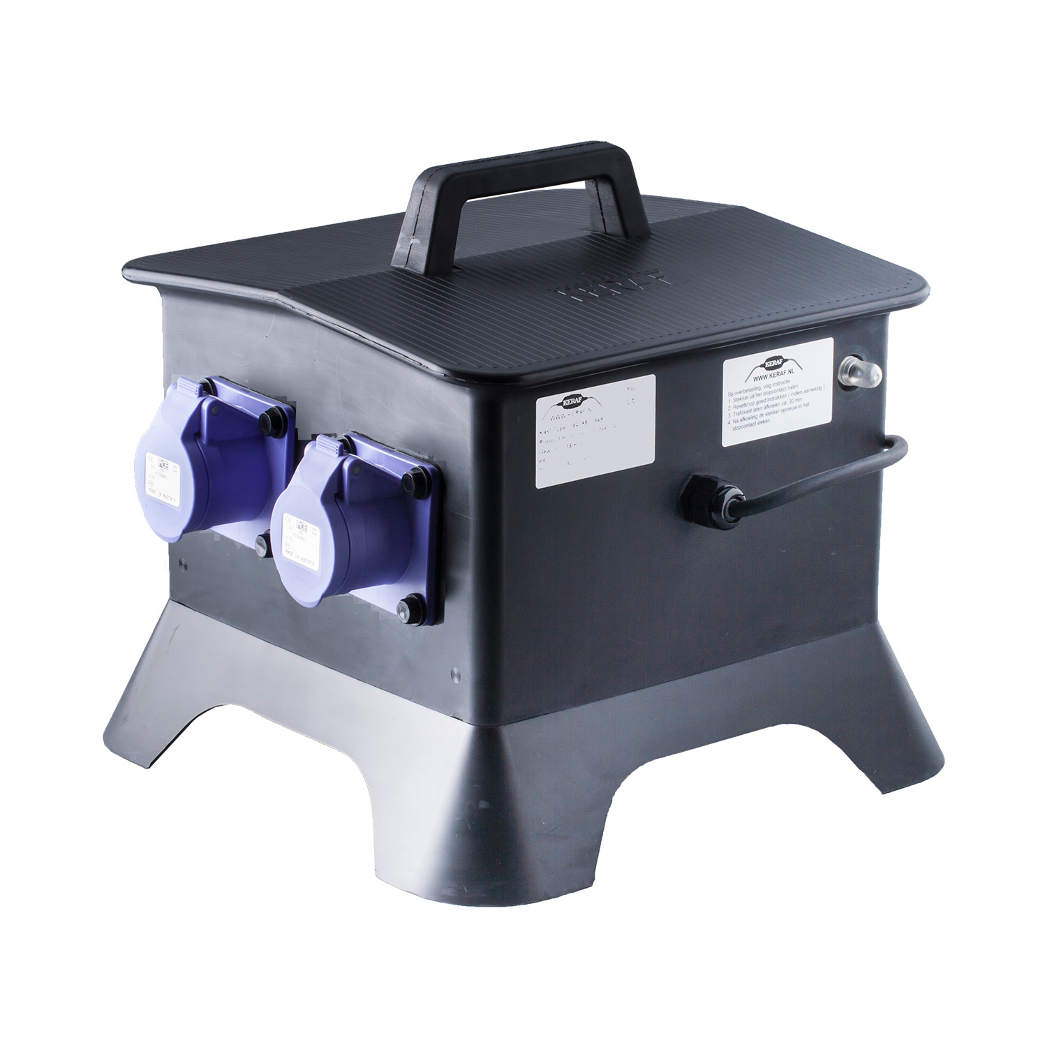 Veelzijdige volrubber kast voor aansluiting van maximaal 1 stuk klasse II handgereedschap en maximaal 2 uitgangen t.bv. klasse III armaturen.