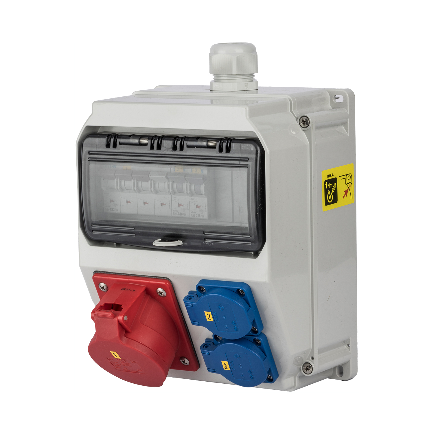 Merk: Keraf Type: Wandkast type KE9000 Materiaal Behuizing: Kunststof Beschermingsgraad (IP): IP54 Ingangsaansluiting: wartel M32 Uitgangen/Contactdozen: 2 contactdozen met randaarde (SCHUKO), CEE-contactdoos-32A: 1x32A5p400V Beveiliging: 1 x automaat 32A 3p+N C-kar 2 x automaat 16A 1p+N C-kar |